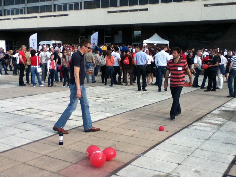 England v France game of boules played with water filled balloons