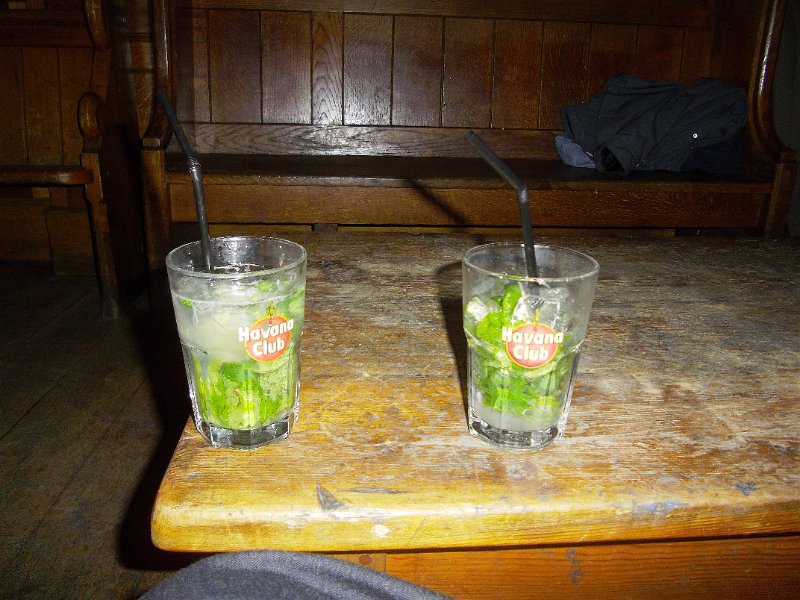 an Irish pub to watch football. Drinking Mojito and Sex on the Beach